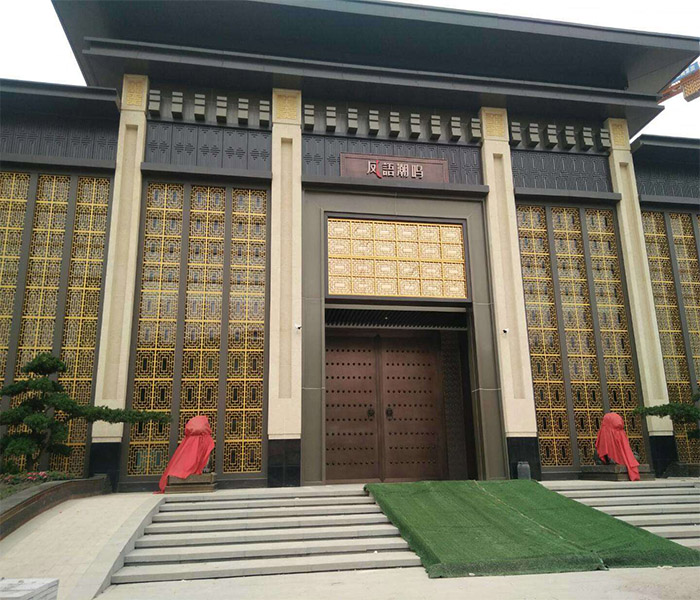 3、铝单板幕墙不易脏污非常便于清洁,氟涂料膜的非粘着性,使表面很难附着污染物。