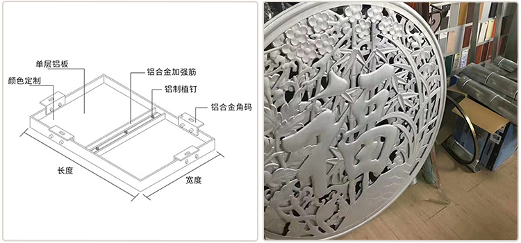 铝单板雕刻花格,立体铝单板雕刻花格已不再是一种简单的装修材料,而是一种精美的艺术装饰品,浮雕铝单板成为代表富贵身价,豪华气派的风景线!采用技术研制开发的铜艺整体雕花护栏。铝单板雕刻护栏、多种系列产品,以它独特的风格,亮丽的光泽,精美的造型,舒适细腻的手感,高贵典雅的品位而被广大用户所认可,为城市建筑、宾馆、酒店、别墅、各种娱乐等时尚住宅的装饰装修增添了一道靓丽的风景。