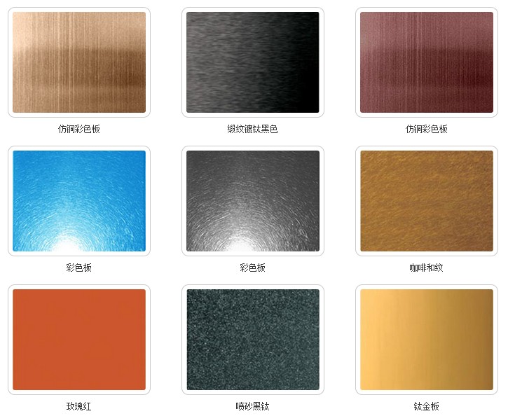 镜面、拉丝、彩色、珠光、蚀刻、仿木纹等