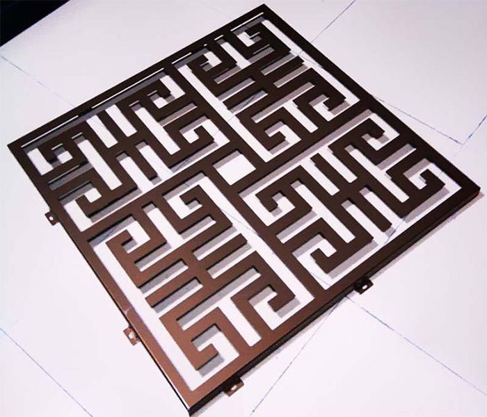强鑫铝业专业设计生产铝窗花、铝合金窗花、仿古铝窗花、木纹铝窗花、铝屏风、古典铝屏风、木纹铝方通、木纹铝单板。 所选仿制木材纹路有:红木、胡桃木、榆木、香樟木、菠萝格、楠木、柚木、花梨木、缅花等。