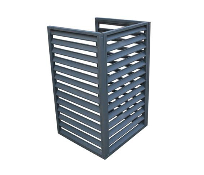 铝合金空调罩采用高强度铝合金材料制作而成,具有强度高、易安装、外形美观等特点。其主体结构根据室外空调主机尺寸使用整块铝合金板冲压钣金而成,大面积的开口有利于气流的流动,减少风力对空调防护罩的直接作用力,大大增加铝合金空调罩的强度。克服过去大面积外墙百叶受风力或气压影响出现的脱落现象。广泛用于美化小区楼盘,遮掩室外空调主机,美化楼宇建筑的外观。有着美观大方、散热良好、坚固耐用的特点。空调保护罩在折角处采用加强筋进行加固。能有效延长您的空调使用寿命!
