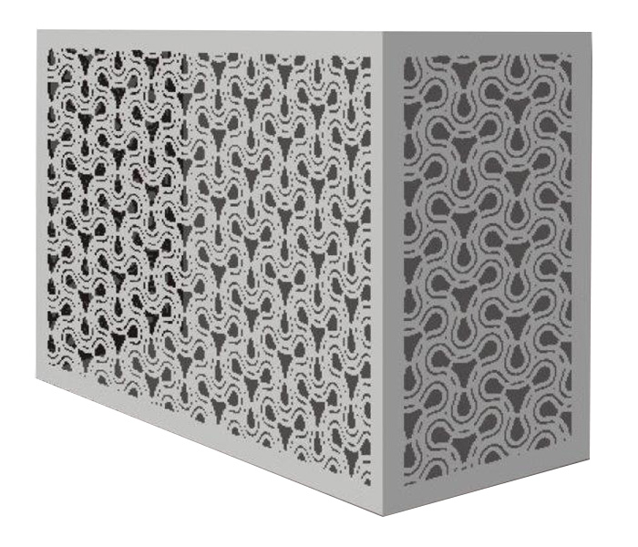 铝合金空调罩采用高强度铝合金材料制作而成,具有强度高、易安装、外形美观等特点。其主体结构根据室外空调主机尺寸使用整块铝合金板冲压钣金而成,大面积的开口有利于气流的流动,减少风力对空调防护罩的直接作用力,大大增加铝合金空调罩的强度。克服过去大面积外墙百叶受风力或气压影响出现的脱落现象。广泛用于美化小区楼盘,遮掩室外空调主机,美化楼宇建筑的外观。有着美观大方、散热良好、坚固耐用的特点。空调保护罩在折角处采用加强筋进行加固。能有效延长您的空调使用寿命!